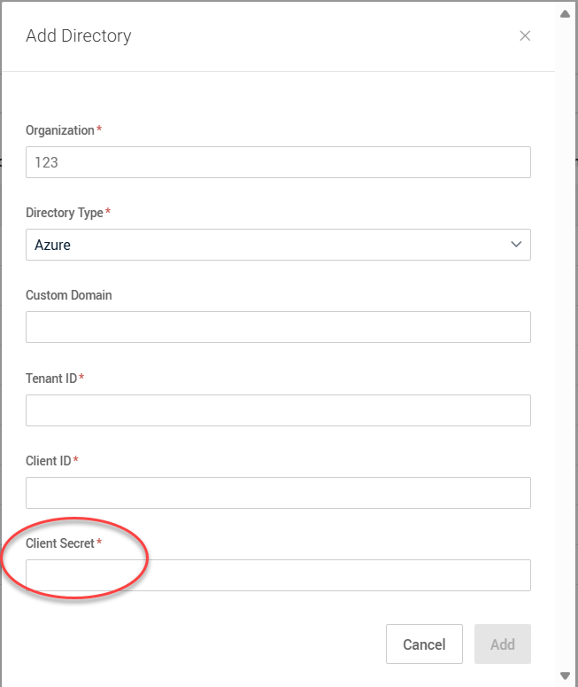 Client Secret: Paste the secret value you copied in step 19 from the previous procedure.