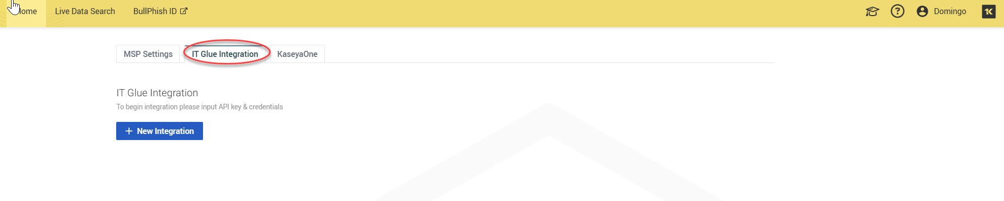IT Glue Integration: Here, you can load your IT Glue organizations into Dark Web ID by supplying the API key from your IT Glue instance.