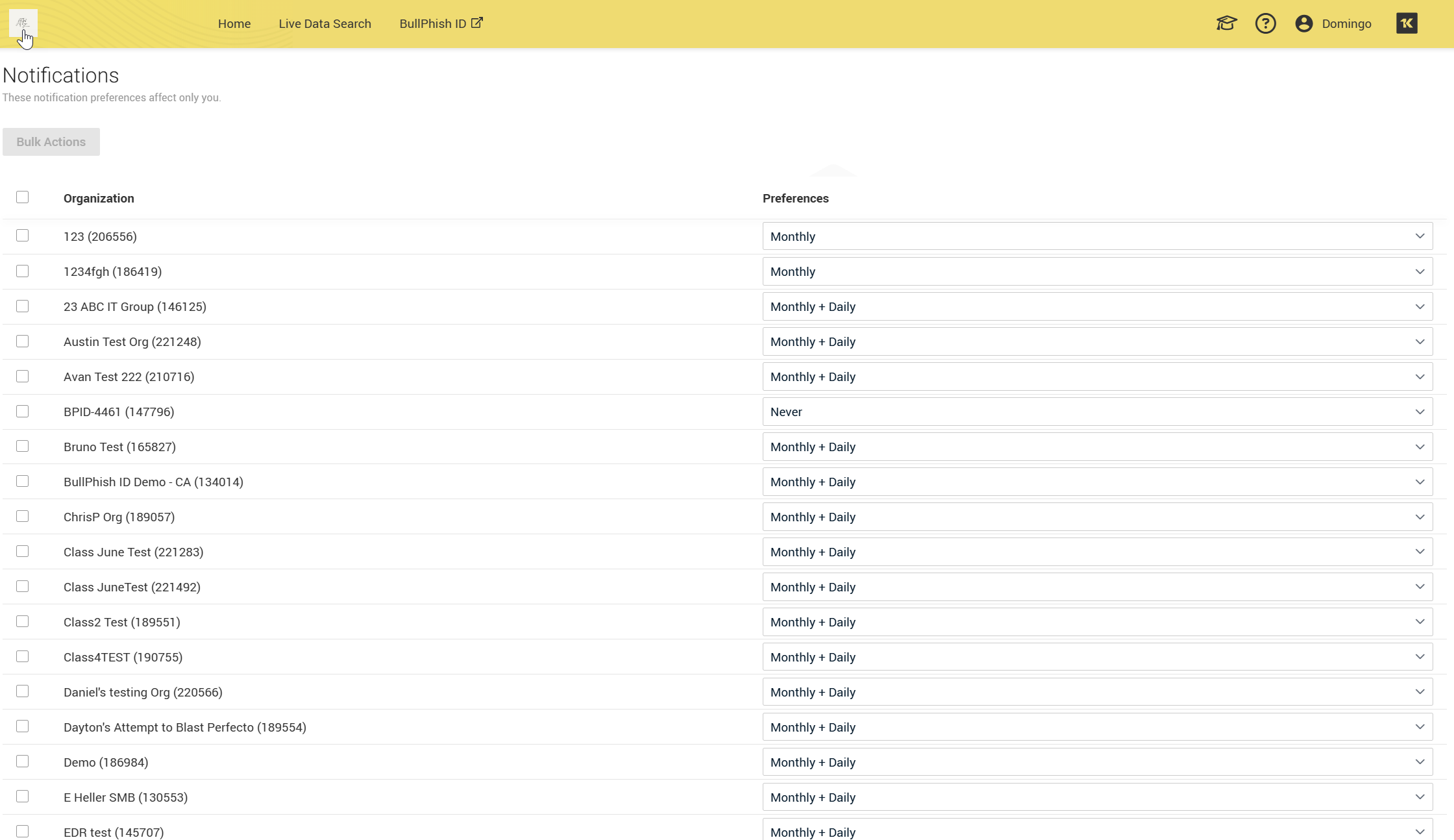 These changes can be edited either in bulk for all organizations or individually.