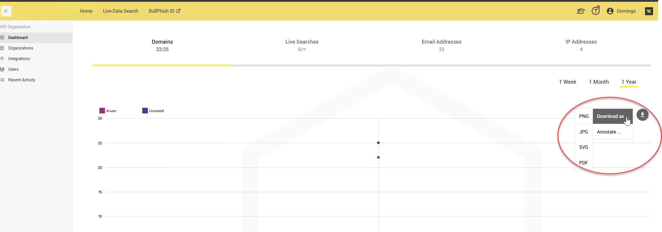You also have the option to download dashboard data in PDF, JPG, SVG, or PNG format.