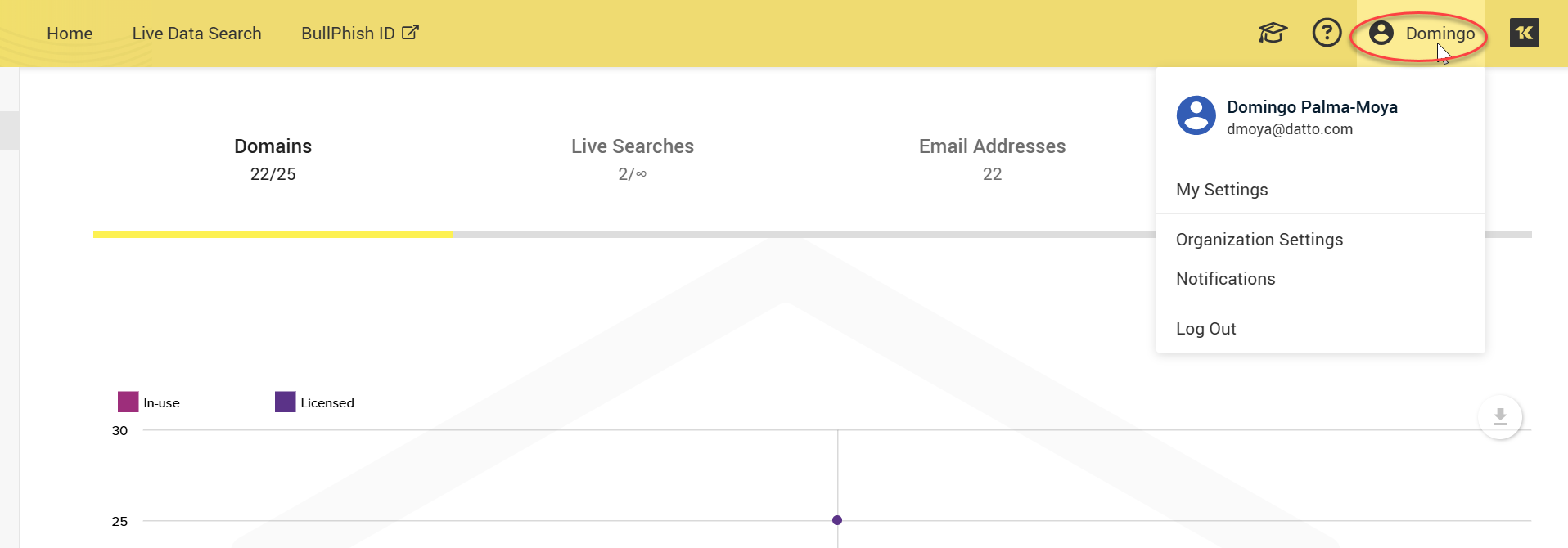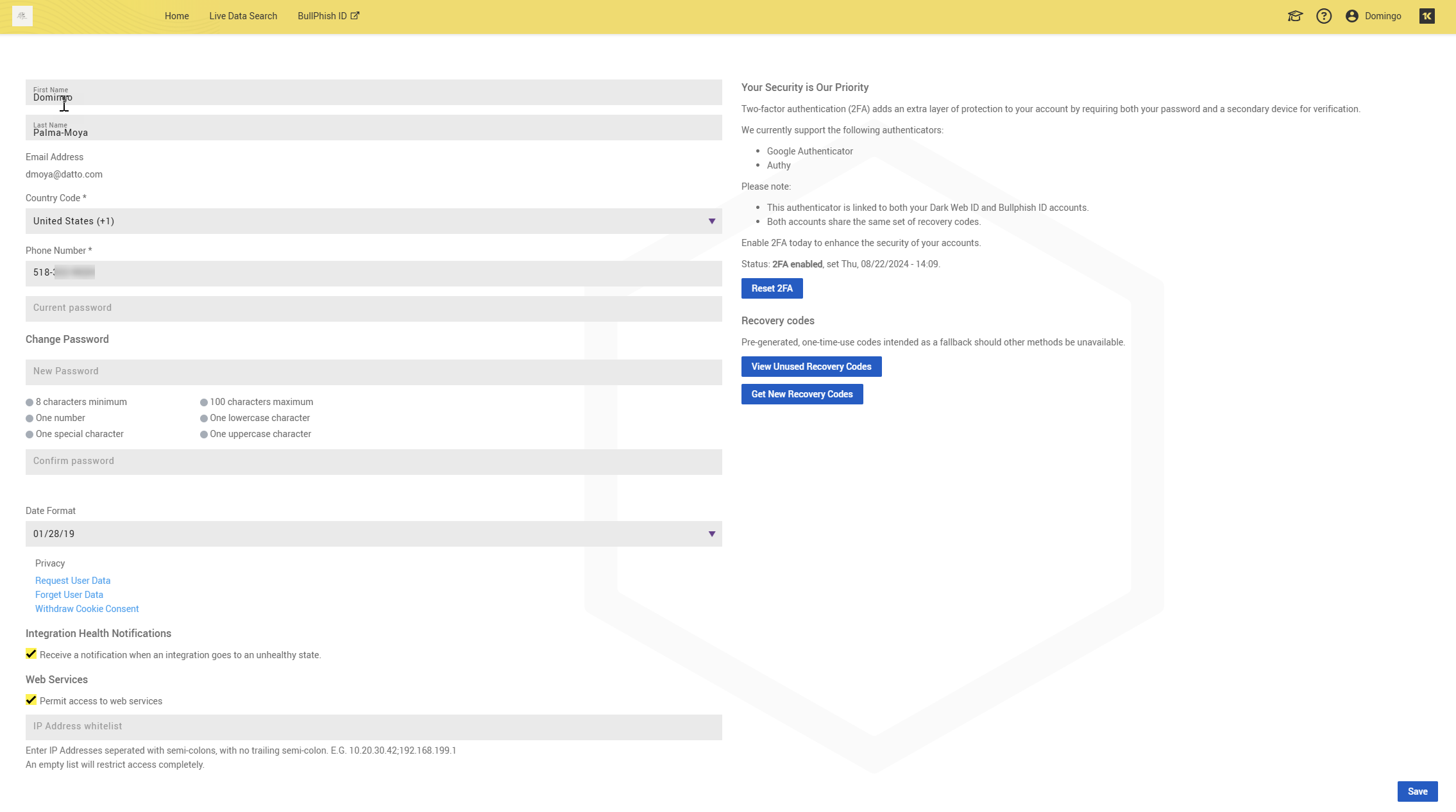 NOTE If you are using both Dark Web ID and BullPhish ID, you can access both modules with a single user login account. Any changes made to your password in either module will automatically update it for both.