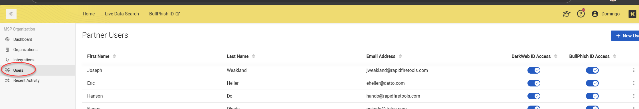 The Users page allows you to create accounts for individuals who need access to your Dark Web ID instance.