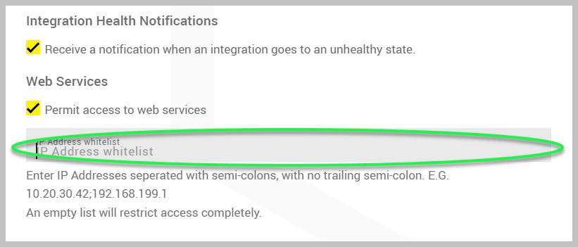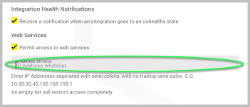 To access the API services, you must enter an IP address in the IP Address whitelist field.
