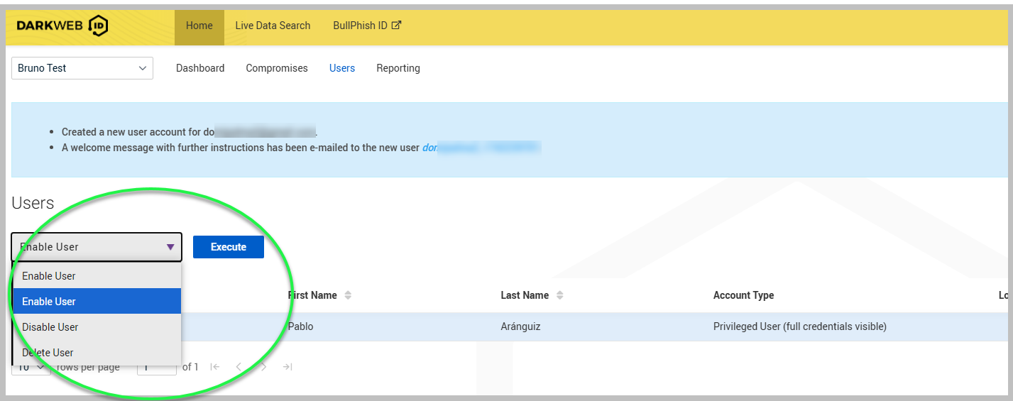 To manage a user quickly, you can disable, delete, or delete them by selecting the appropriate option under Users section and clicking Execute.