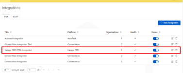 NOTE If your organizations are spread out between multiple Kaseya BMS sites, you will need to set up multiple integrations.