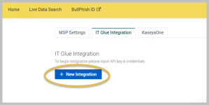 Click + New Integration to set up the integration with IT Glue.