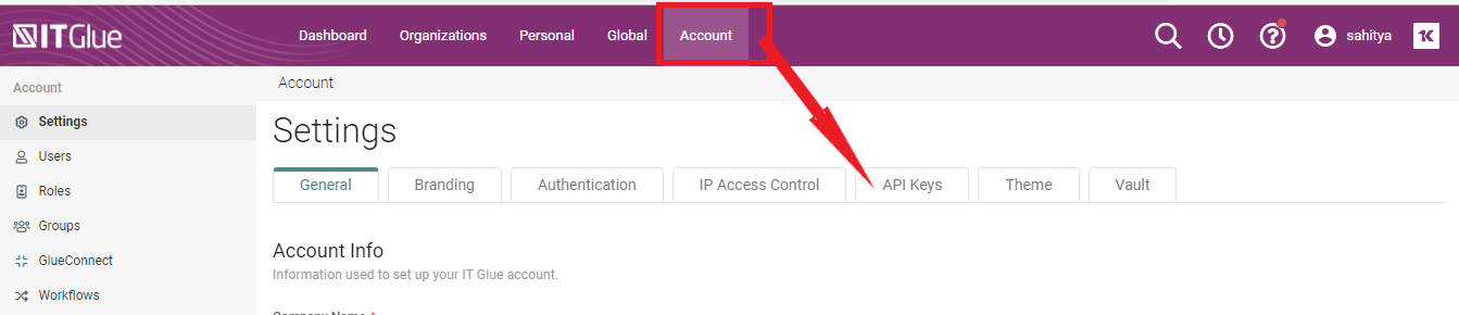 Generating an API key in IT Glue
