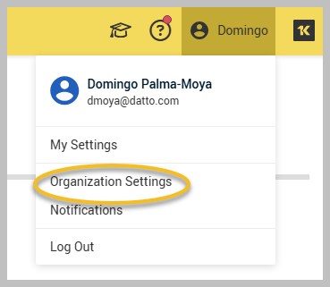 Click your username in the upper-right corner (My Account) and select Organization Settings.