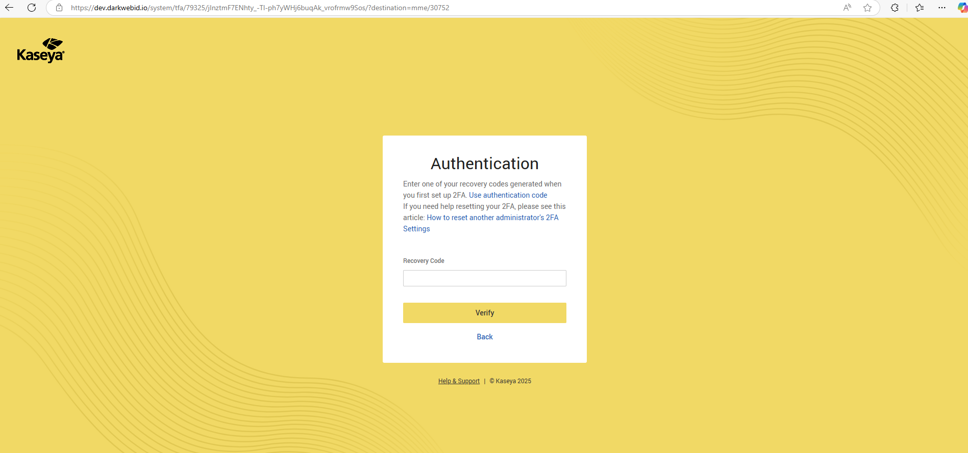 A Help link has been added to the 2FA page, guiding users on how to reset 2FA with their partner administrator.