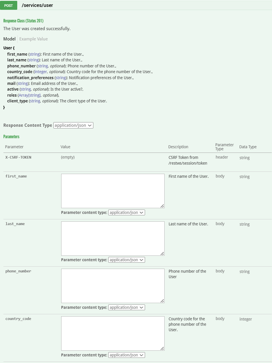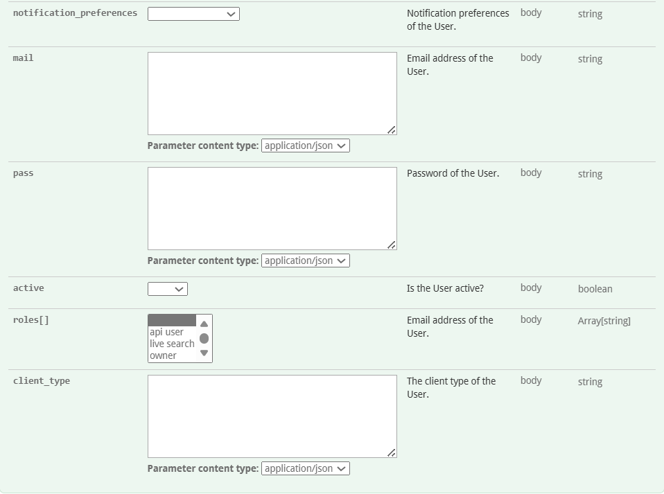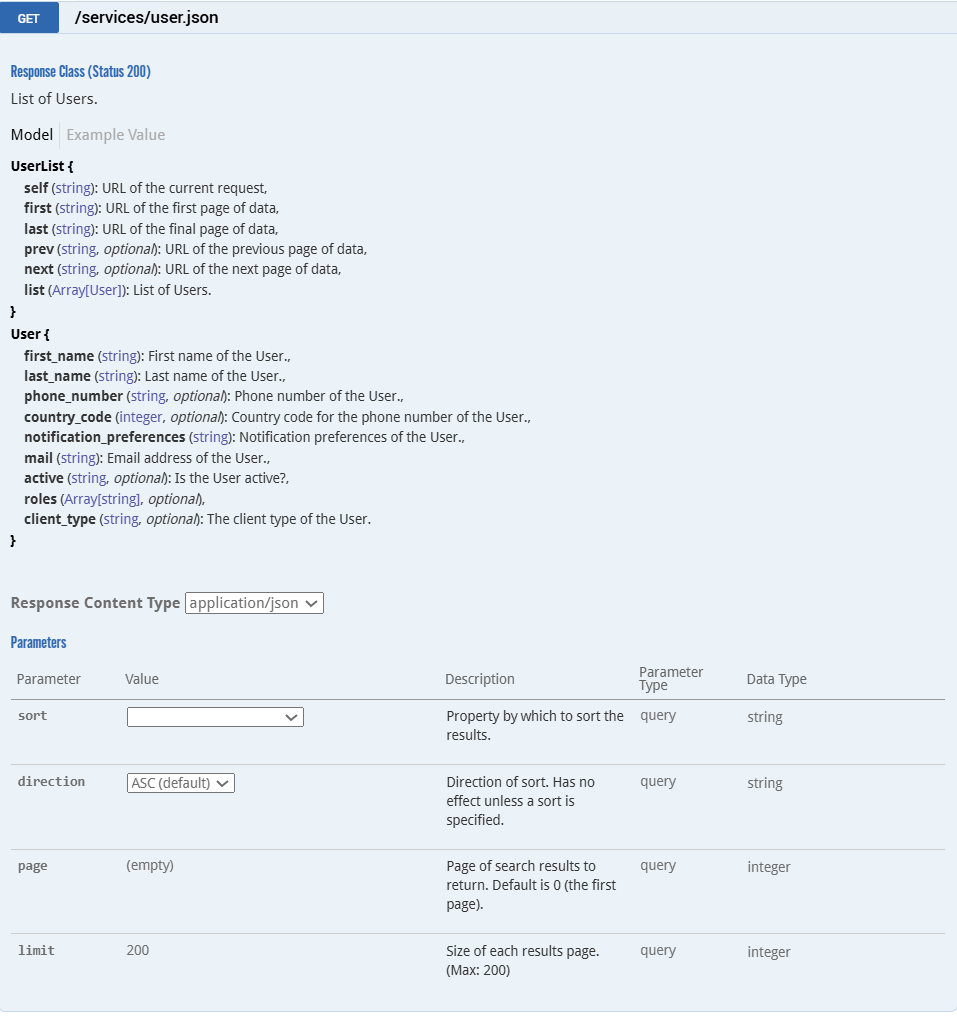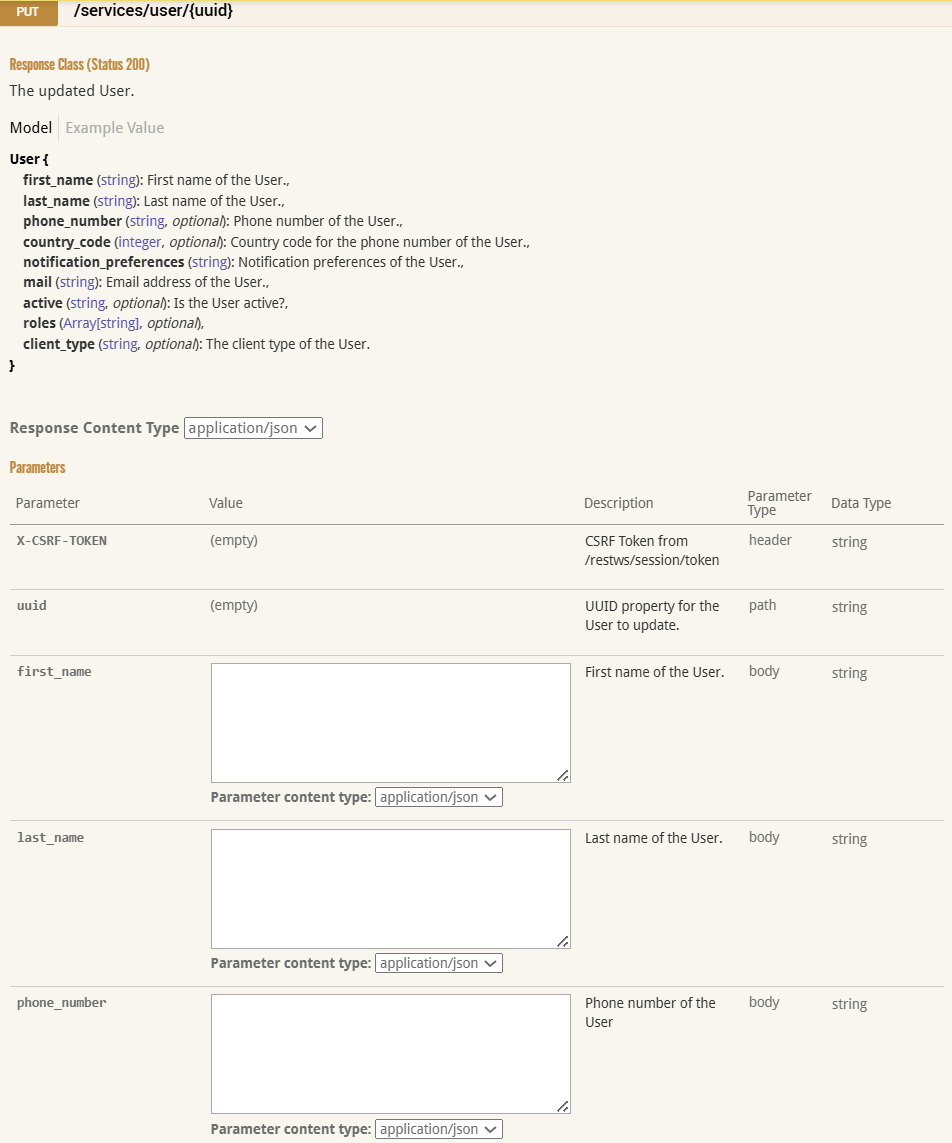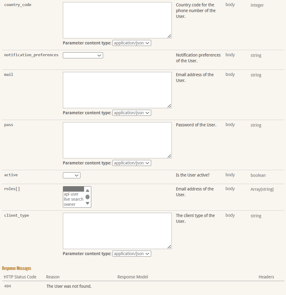 API: User operations