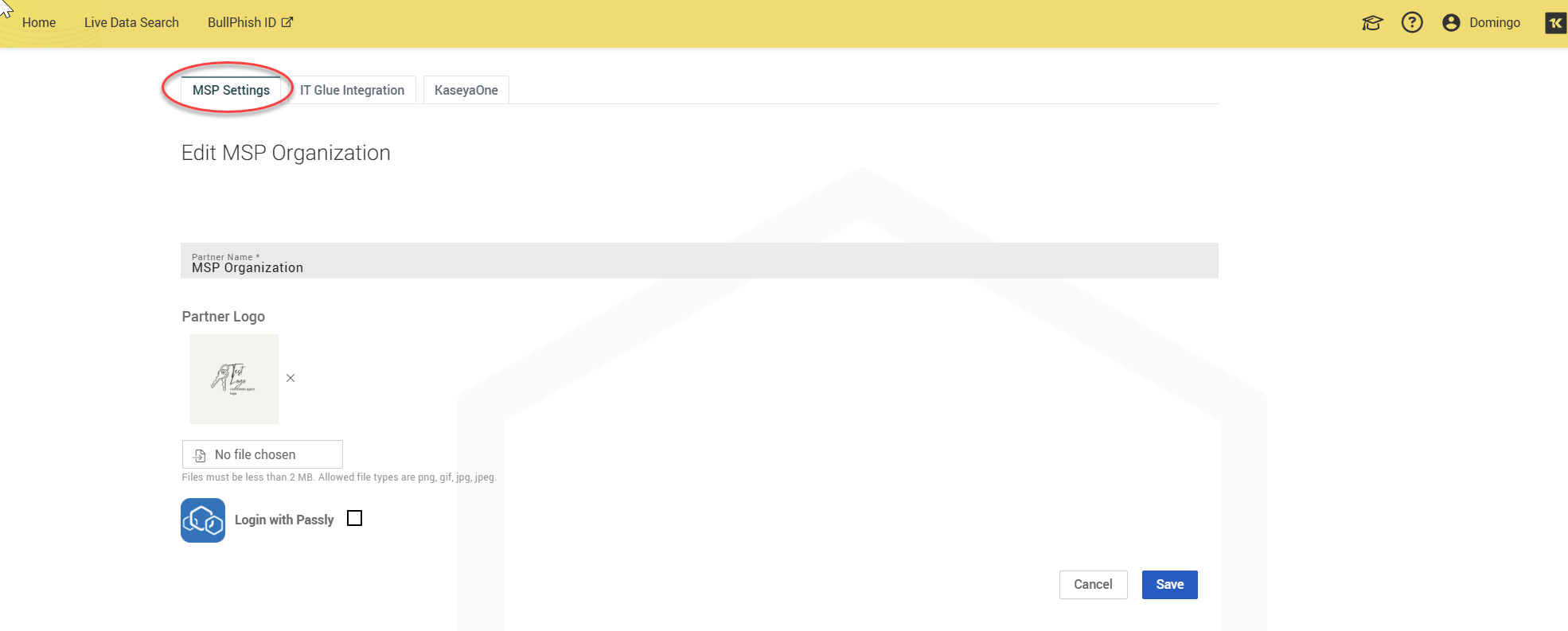 MSP Settings: Here, you can create and manage your partner name and logo.