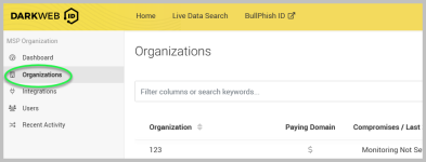 Clicking and organization will take you to the selected organization's dashboard. Click Users in the upper menu.