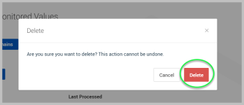 A pop-up confirmation message will be displayed. Click Delete to remove the monitored value permanently.