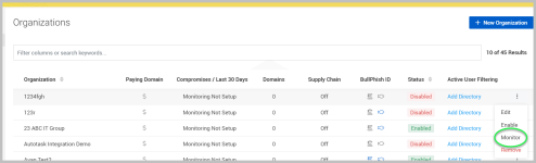 Fill out the fields to enable monitoring for this organization. Click Save.