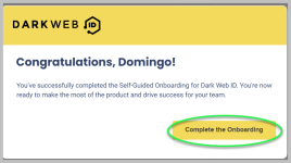 Upon completing your onboarding, a Congratulations pop-up window will be displayed. Click Complete the Onboarding to proceed.