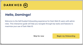 The welcome pop-up announcement that appears upon initiating the self-guided onboarding feature now includes an option to Skip for now.